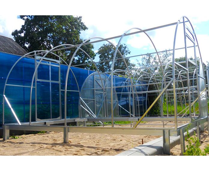 Saliekama cinkota tērauda profilu pamatu konstrukcija jebkura tipa siltumnīcām.