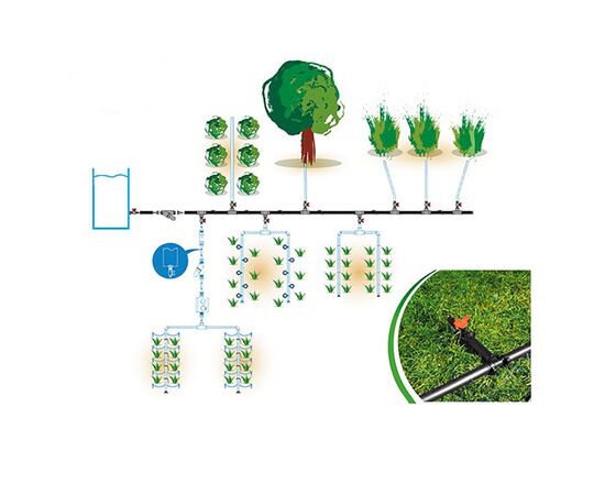Ūdensvada „Gultne” komplektā ietilpst 50 metrus gara šļūtene, kuru stiprina pie ūdens mucas vai centrālā ūdensvada. Katrs mazdārziņš ir unikāls, tāpēc komplektā ietilpst arī dažādas pārejas un aizbāžņi, kurus izmantojot varēsiet šļūteni izvietot visā teritorijā. Skavas un turētājmietiņi palīdzēs šļūteni droši nostiprināt augsnē. Astoņas izejas vietas palīdzēs pievienot kopējai sistēmai smidzināšanas vai spraugu laistīšanas sistēmu, perforēto un mikroporaino šļūteni, pievadīt ūdeni baseinam, dušai vai zāliena smidzinātājam. Jebkurā brīdī varat noslēgt ūdens padevi visā ūdensvadā vai kādā no atsevišķajiem posmiem. Komplektā ietilpst filtrs, kas attīrīs ūdeni.